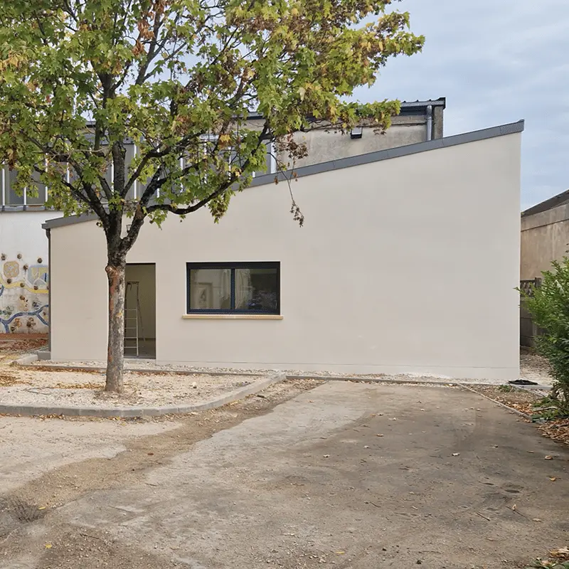 Ce projet vise à rénover un gymnase existant tout eny ajoutant une extension dédiée aux associations sportives à l’arrière du bâtiment.
